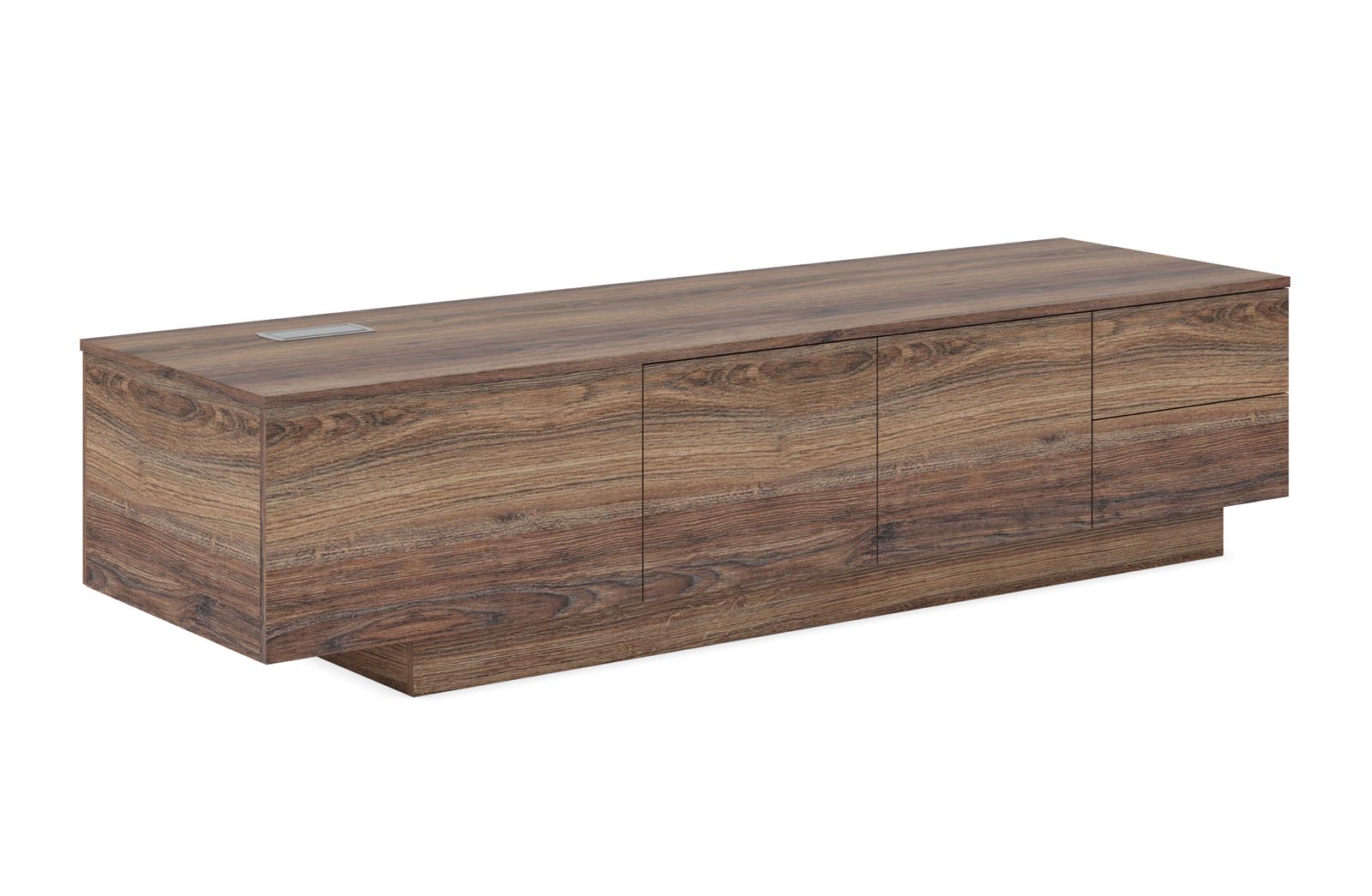 Коллекция кабинетов ERA – яркий символ прогресса человеческой цивилизации и возвращения к истокам бытия. В “рубленых» брутальных формах монолитных предметов интерьера заложена мощь интеллекта нашего современника и тысячелетняя мудрость предков. В простоте конструктивных решений и колорите инновационных материалов под натуральные дерево и кожу обнаруживается совершенство. Владелец этого кабинета знает, как устроен мир, он не будет размениваться по мелочам, когда идет к своей цели. Он ценит настоящую, а не мнимую, роскошь, его бизнес солиден и респектабелен, а удобство и комфорт он ценит превыше всего в жизни. По своей геометрии удлиненная тумба как бы «обтекает» опоры стола. Шкафная группа состоит из 3-х предметов, объединенных под единым топом и декорированных боковыми панелями из современного и «легкого» материала тамбурат. Сами шкафы слегка «утоплены» в паспарту, что придает законченный вид всей композиции.