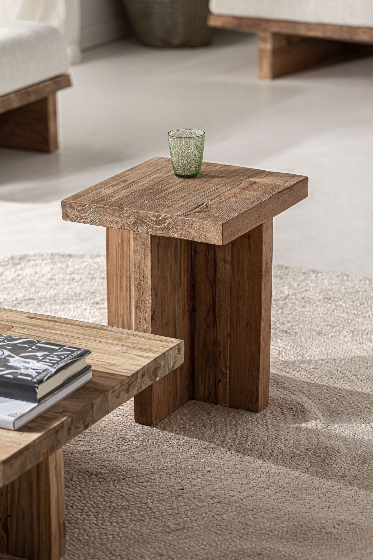 Приставной столик PURE натурального цвета в колониальном стиле. Изготовлен из железнодорожной древесины.