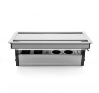 Розетки Versa Flap Dual имеют возможность подключения с обеих сторон столешницы, что позволяет их идеально вписать в мебель для конференц-залов, а независимое открывание блока розеток в обе стороны обеспечивает комфортный доступ к розеткам с обеих сторон стола.
