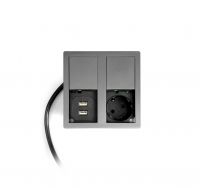 Розеточный блок встраиваемый VersaHit Dual 1p+2USB(A+A) ТЕМНО-СЕРЫЙ