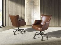 Кресло вращающееся современного дизайна с сиденьем и спинкой, обитыми темно-коричневой воловьей кожей . Оно имеет подлокотники , что делает его более удобным. Благодаря ножкам из затемненной нержавеющей стали оно станет неотъемлемой частью вашего рабочего места, не оставляя в стороне самый авангардный стиль. Его колесики обеспечат дополнительную практичность, необходимую для работы или учебы.
