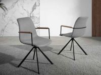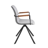 Вращающийся стул 4105 от фабрики Angel Cerda – модный и неподвластный времени. Чтобы сделать свое рабочее пространство стильным и современным, дополните ваш стол стулом 4105 от фабрики Angel Cerda. Его встроенный поворотный механизм обеспечит привычную мобильность, а оригинальная конструкция выделит пространство. С таким стулом ваша остановка будет в тренде, даже если это вовсе не кабинет, а гостиная или столовая. Почему нет? Дизайн полностью позволяет! Стул имеет металлическую основу, которая окрашена в черный цвет матовой порошковой краской. Ножки расставлены под углом, обеспечивая равномерное распределение нагрузки. Максимальный вес на стул не должен превышать 130 кг. Встроенный поворотный механизм обеспечивает вращение стула на 360 градусов. Регулировка высоты ножек не предусмотрена. Есть защитные накладки, которые не портят напольное покрытие. Тканевая обивка выполнена из прочной синтетической ткани серого цвета. Она стойкая к истиранию, легко чистится от загрязнений. Наполнитель сиденья – пенополиуретан плотностью 25 кг/м3. Он обеспечивает оптимальный комфорт и хорошо держит форму. Подлокотники на ручках сделаны из натуральной древесины и являются главной изюминкой дизайна этой модели. Размеры стула: ширина – 50 см, высота – 85 см, глубина – 62 см. Вес изделия – 10,5 кг. Потребуется минимальная сборка. Ткань - Similar Mirage 59.