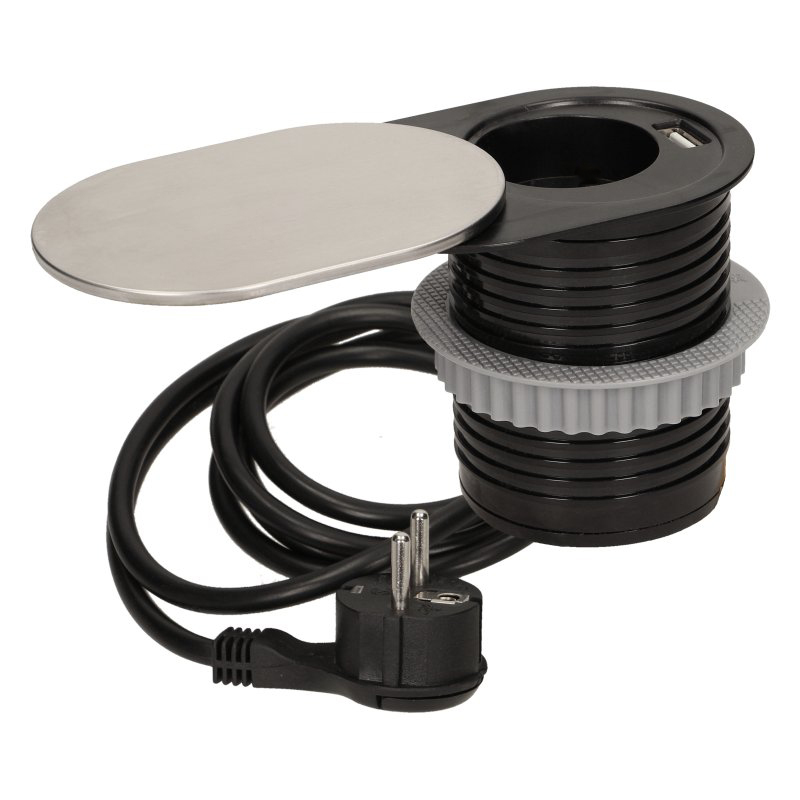Врезная розетка с крышкой FLY (нержавеющая сталь, на 1 розетку + USB)