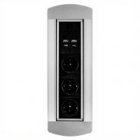 Врезной блок розеток FLIP (3 EURO, 2 USB, RJ45)