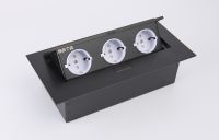Спецификация Комплектация: Полностью в сборе: с внутренней проводкой, монтажной коробкой Производитель SETE Количество розеток 3 EURO Напряжение 200-250 В Максимальный ток 16 А Максимальная мощность 4000 Вт Цвет Серебристый Габаритный размер 26,5х13 cм Монтажное отверстие ВхШхГ 22,5х11х6,5 cм Материал: Корпус, верхняя рамка, установочная коробка из металла Метки товара: Выдвижные розетки для кухни, мебели, рабочих зон Выдвижная розетка сертифицирована в РФ. Гарантия 2 года. Выдвижной розеточный блок SETE SBT-03-80, на 3 розетки, серебристый. При нажатии на кнопку на лицевой части розетки, происходит плавное открытие. Качественная порошковая окраска корпуса позволяет долгое время сохранить внешний вид нового изделия, розетка не царапается. Комплект поставки так же входит инструкция по установке изделия в столешницу, с подробной схемой и указанием всех размеров. Сфера применения: Выдвижные розетки отлично подходят для установки в столешницу на кухне, что помогает экономить рабочее пространство. В закрытом положении встраиваемая розетка образует со столешницей практически ровную поверхность. Также выдвижные розетки нашли распространение в офисах, переговорный залах, стойках обслуживания клиентов.
