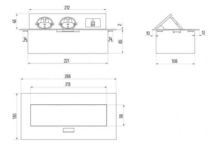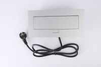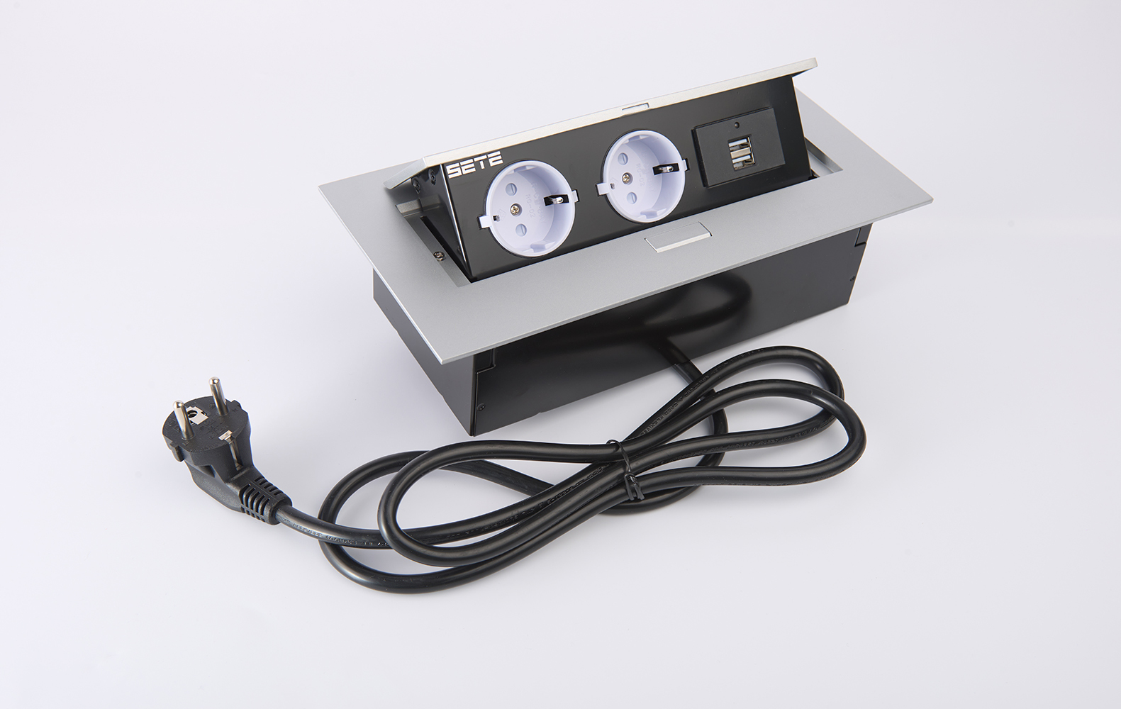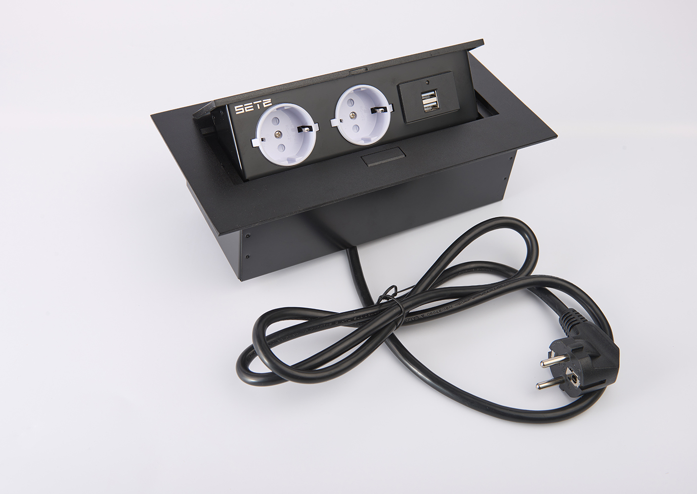 Спецификация Комплектация: Полностью в сборе: с внутренней проводкой, монтажной коробкой, проводом 1.5 метра с вилкой Производитель SETE Количество розеток 2 EURO + 2 USB Напряжение 200-250 В Максимальный ток 16 А Максимальная мощность 4000 Вт Цвет Чёрный Габаритный размер 26,5х13 см Монтажное отверстие ВхШхГ 22,5х11х6,5 см Материал: Корпус, верхняя рамка, установочная коробка из металла Метки товара: Выдвижные розетки для кухни, мебели, рабочих зон USB 5V, 2.1A Выдвижная розетка сертифицирована в РФ. Гарантия 2 года. Выдвижной розеточный блок SETE SBT-2UC-20, на 2 розетки и 2 USB, чёрный. При нажатии на кнопку на лицевой части розетки, происходит плавное открытие. Качественная порошковая окраска корпуса позволяет долгое время сохранить внешний вид нового изделия, розетка не царапается. Комплект поставки так же входит инструкция по установке изделия в столешницу, с подробной схемой и указанием всех размеров. Сфера применения: Выдвижные розетки отлично подходят для установки в столешницу на кухне, что помогает экономить рабочее пространство. В закрытом положении встраиваемая розетка образует со столешницей практически ровную поверхность. Также выдвижные розетки нашли распространение в офисах, переговорный залах, стойках обслуживания клиентов.
