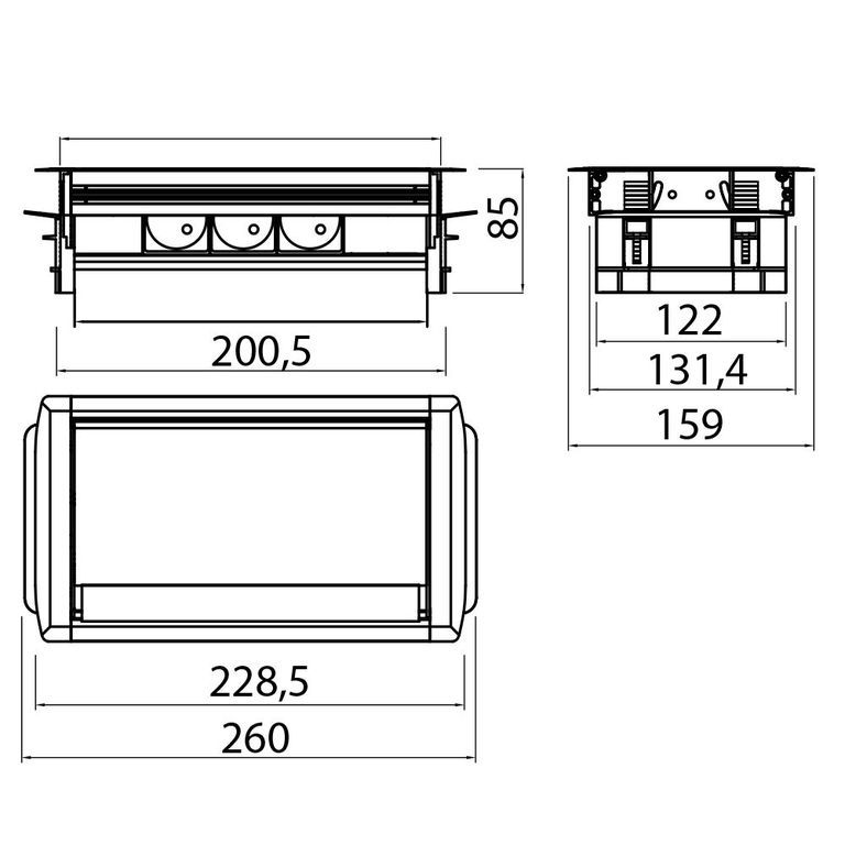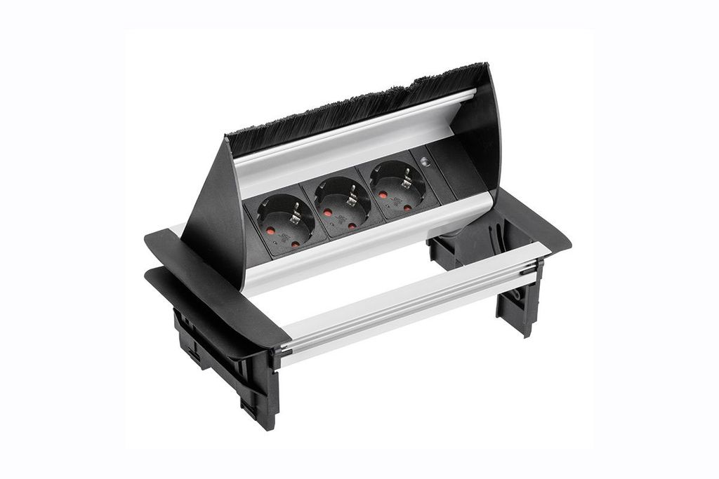 Встраиваемая выдвижная розетка GTV AE-PBC3GS-53BKS с пропуском под кабель (на 3 розетки)