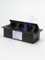 Спецификация Комплектация: монтажная коробка Наименование INRIOR TORO-01-20 BLACK Количество розеток 3 EURO Напряжение 200-250 В Максимальный ток 16 А Максимальная мощность 3600 Вт Цвет корпуса Черный Габаритный размер 265?118?65 мм Врезное отверстие 225х108 мм Материал: Корпус, верхняя рамка, установочная коробка из металла Метки товара: Выдвижные розетки для кухни, мебели, рабочих зон Выдвижная розетка сертифицирована в РФ. Гарантия 2 года. Выдвижная розетка INRIOR TORO-01-20 BLACK (чёрная, на 3 розетки) Выдвижная горизонтальная розетка, представляет собой металлический прямоугольный розеточный блок INRIOR TORO-01-20 на 3 EURO розетки. Аналог: Etersso 267J. При нажатии на кнопку на лицевой части розетки, происходит плавное открытие. Качественная порошковая окраска корпуса позволяет долгое время сохранить внешний вид нового изделия, розетка не царапается. Комплект поставки так же входит инструкция по установке изделия в столешницу, с подробной схемой и указанием всех размеров. Сфера применения: Выдвижные розетки отлично подходят для установки в столешницу на кухне, что помогает экономить рабочее пространство. В закрытом положении встраиваемая розетка образует со столешницей практически ровную поверхность. Также выдвижные розетки нашли распространение в офисах, переговорный залах, стойках обслуживания клиентов.