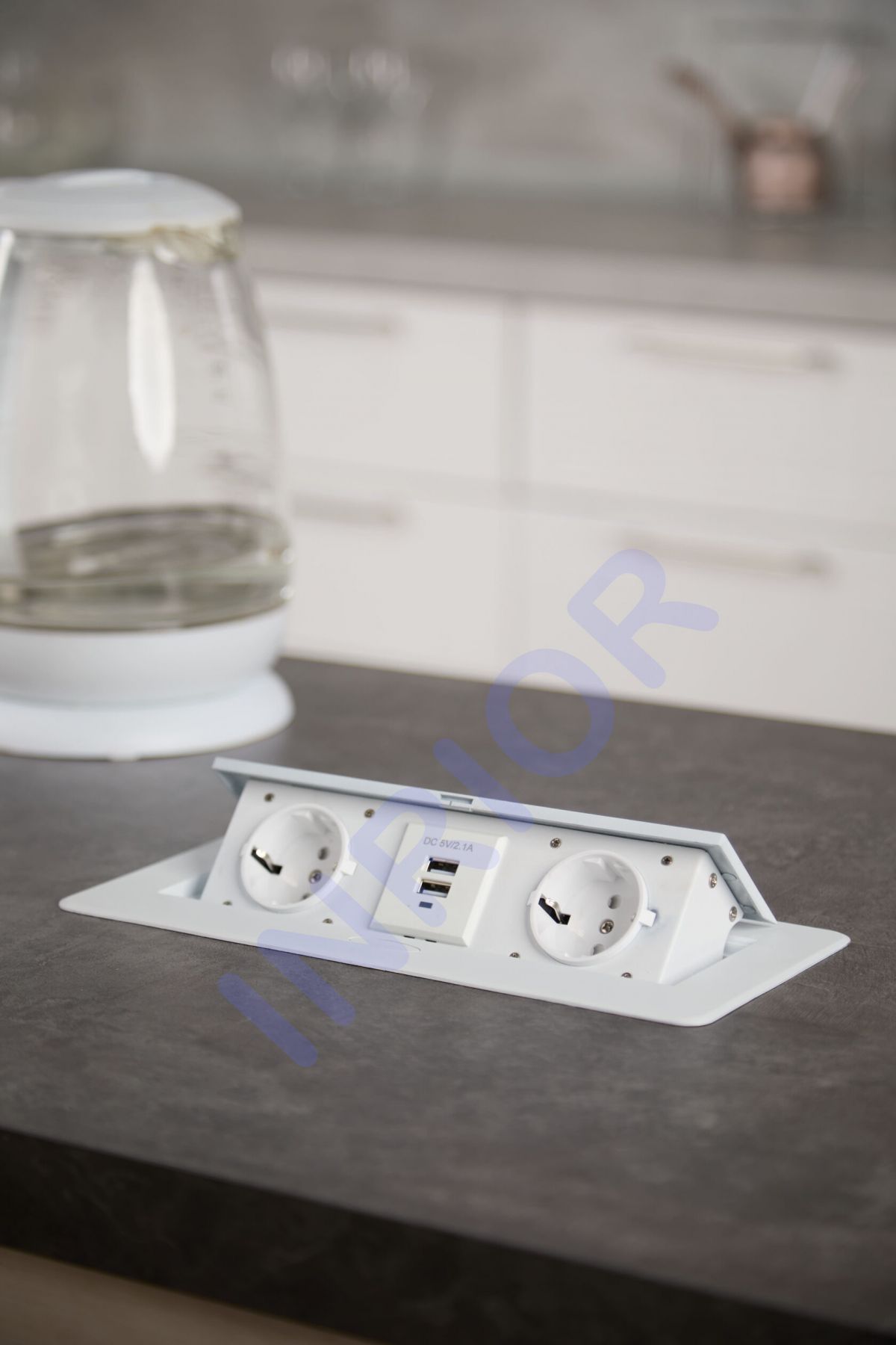 Встраиваемая выдвижная розетка INRIOR TORO-88(на 2 розетки, 2 USB)