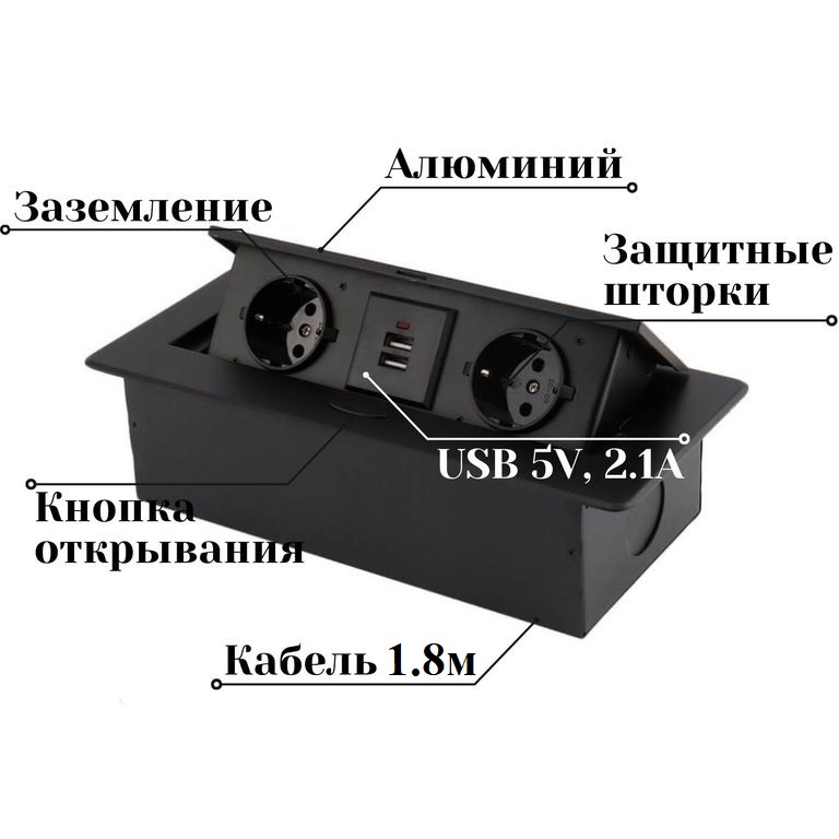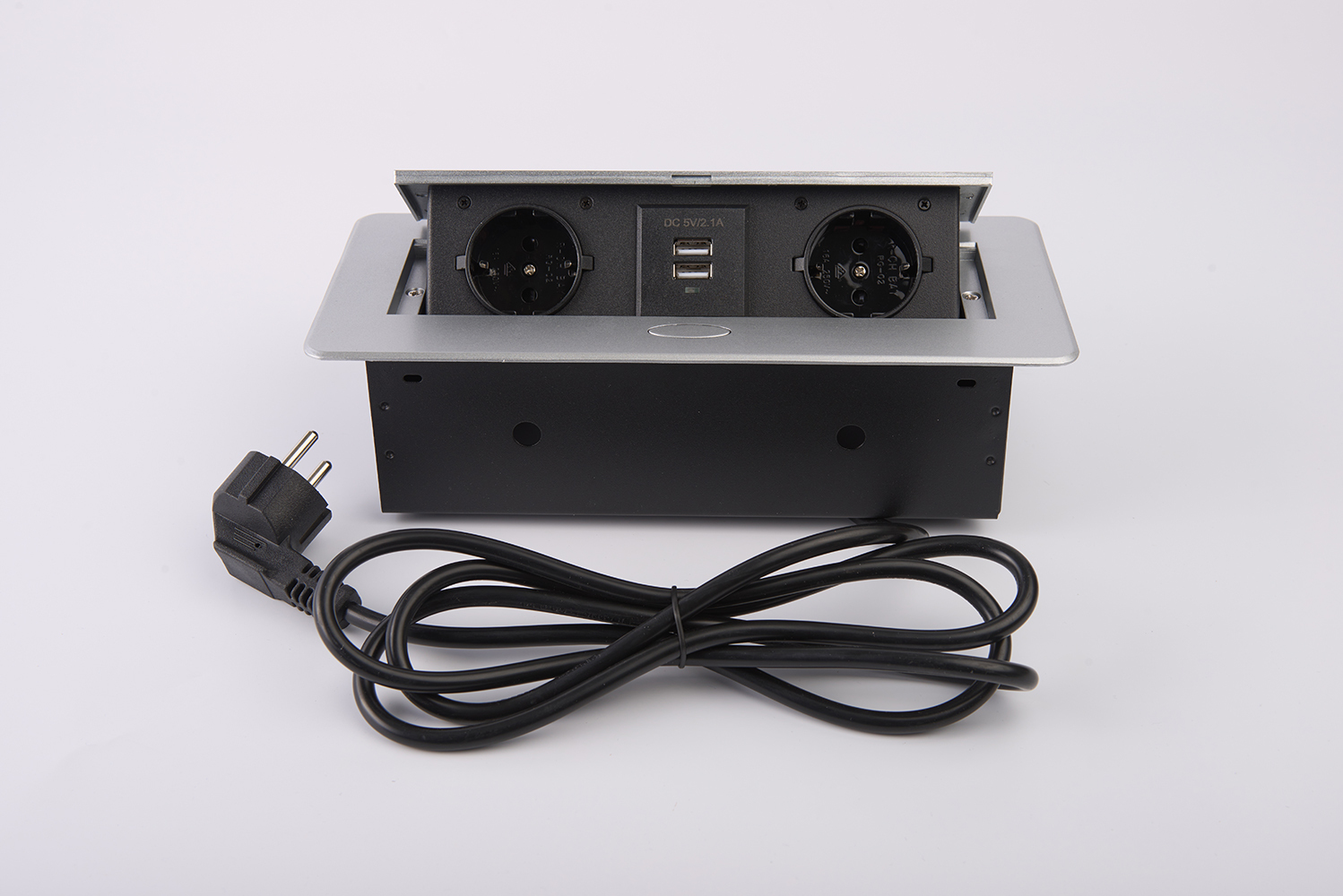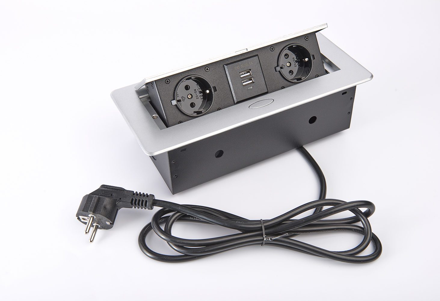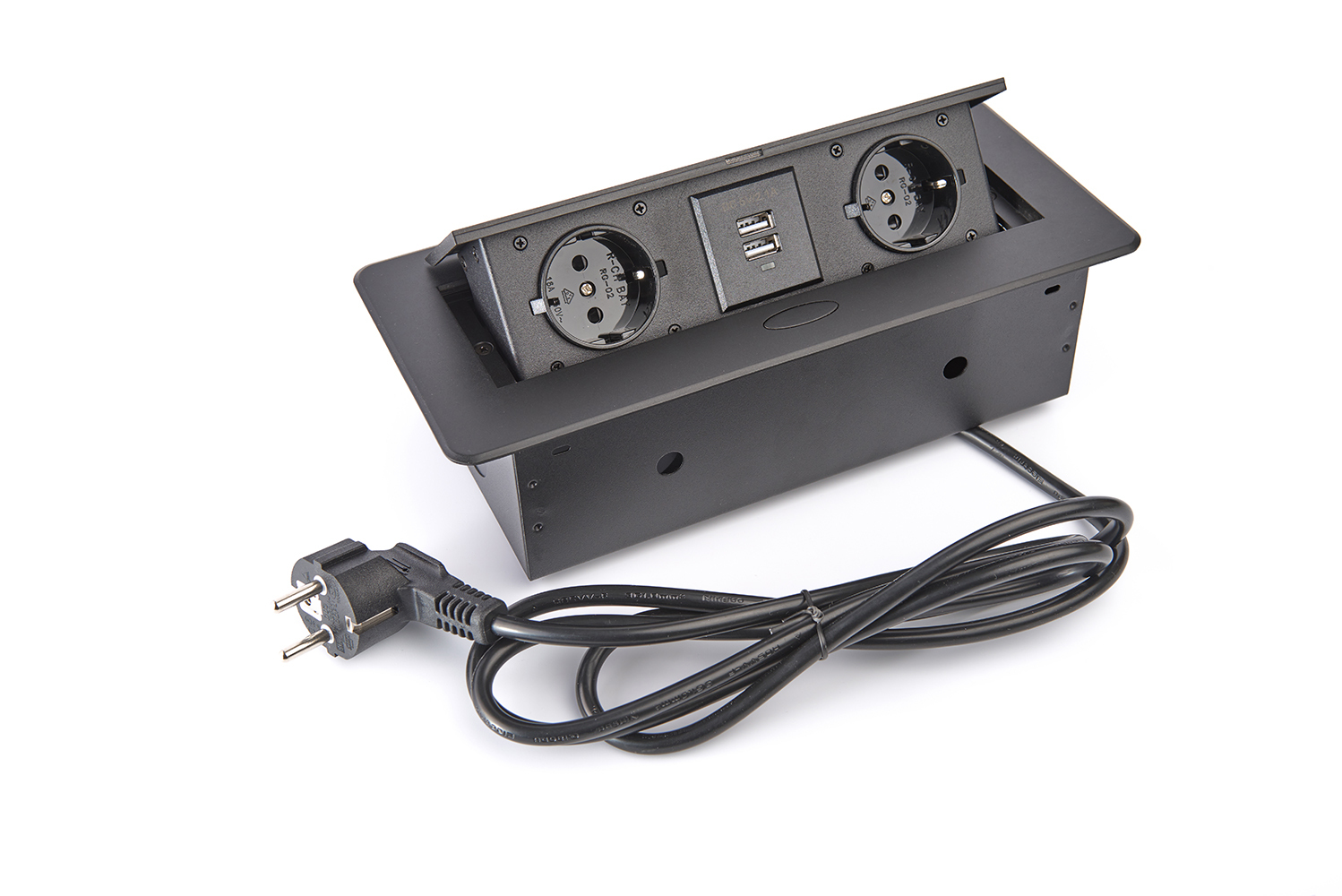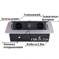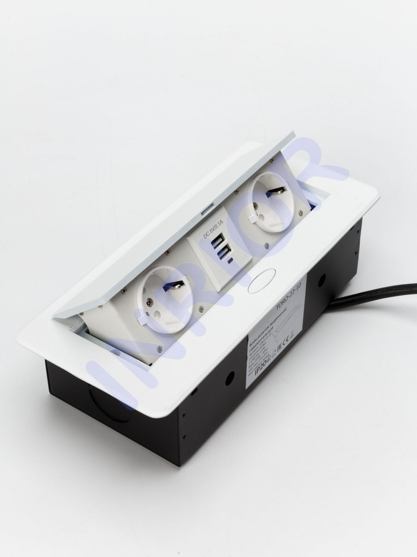 Встраиваемая выдвижная розетка TORO (на 2 розетки, 2 USB)