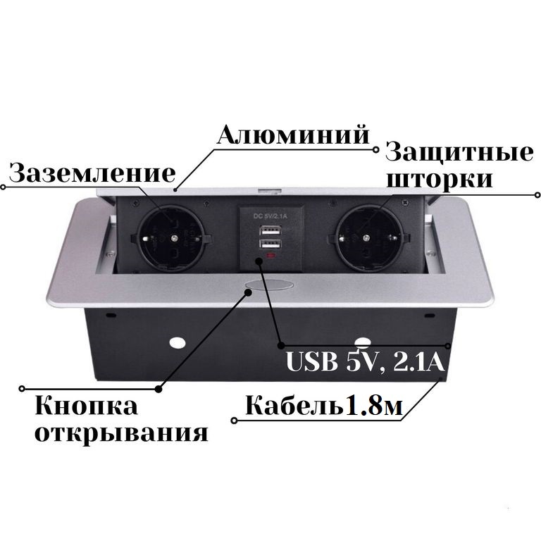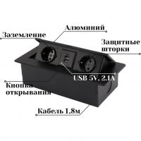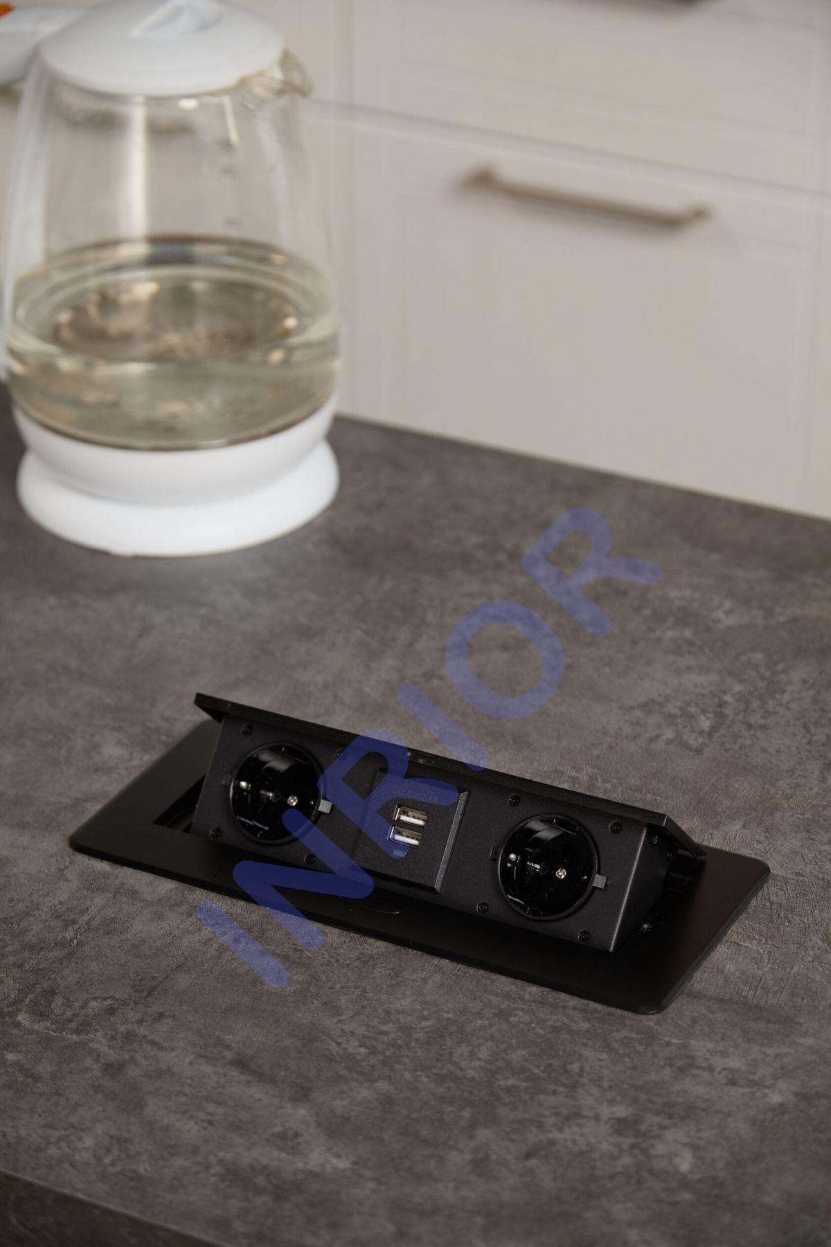 Спецификация Комплектация: Полностью в сборе: с внутренней проводкой, монтажной коробкой, проводом 1.8 м с вилкой Наименование INRIOR TORO-22-80 GRAY Количество розеток 2 EURO + 2 USB Напряжение 200-250 В Максимальный ток 16 А Максимальная мощность 3600 Вт Цвет корпуса Серебристый Габаритный размер 265?118?65 мм Врезное отверстие 225х108 мм Материал: Корпус, верхняя рамка, установочная коробка из металла Метки товара: Выдвижные розетки для кухни, мебели, рабочих зон USB 5V, 2.1A Выдвижная розетка сертифицирована в РФ. Гарантия 2 года. Выдвижная розетка INRIOR TORO-22-80 GRAY (серебристая, на 2 розетки, 2 USB) Выдвижная горизонтальная розетка INRIOR TORO-22-80, представляет собой металлический прямоугольный розеточный блок на 2 EURO розетки и 2 USB порта. Аналог: Etersso 267J. При нажатии на кнопку на лицевой части розетки, происходит плавное открытие. Качественная порошковая окраска корпуса позволяет долгое время сохранить внешний вид нового изделия, розетка не царапается. Данная модель готова к эксплуатации вся внутренняя разводка уже сделана на заводе, в комплекте с сетевым шнуром длиной 1.8 м, необходимо только подключить изделие к розетки. Комплект поставки так же входит инструкция по установке изделия в столешницу, с подробной схемой и указанием всех размеров. Сфера применения: Выдвижные розетки отлично подходят для установки в столешницу на кухне, что помогает экономить рабочее пространство. В закрытом положении встраиваемая розетка образует со столешницей практически ровную поверхность. Также выдвижные розетки нашли распространение в офисах, переговорный залах, стойках обслуживания клиентов.