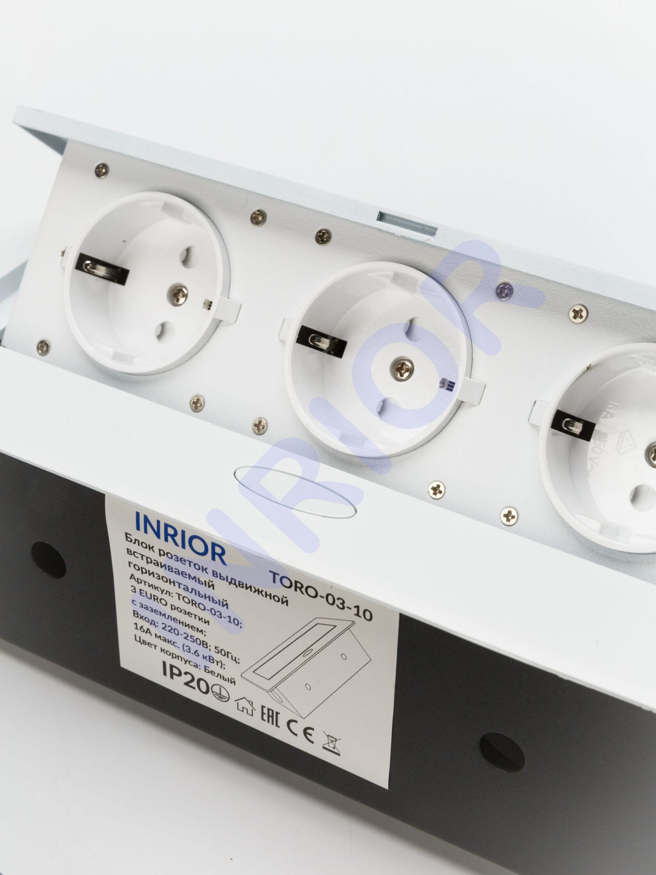 Спецификация Комплектация: Полностью в сборе: с внутренней проводкой, монтажной коробкой, проводом 1.8 м с вилкой Наименование INRIOR TORO-03-80 GRAY Количество розеток 3 EURO Напряжение 200-250 В Максимальный ток 16 А Максимальная мощность 3600 Вт Цвет корпуса Серебристый Габаритный размер 265?118?65 мм Врезное отверстие 225х108 мм Материал: Корпус, верхняя рамка, установочная коробка из металла Комплектация: Полностью в сборе, монтажная коробка, провод 1.8 м с вилкой Метки товара: Выдвижные розетки для кухни, мебели, рабочих зон Выдвижная розетка сертифицирована в РФ. Гарантия 2 года. Выдвижная розетка INRIOR TORO-03-80 GRAY (серебристая, на 3 розетки) Выдвижная горизонтальная розетка INRIOR TORO-03-80, представляет собой металлический прямоугольный розеточный блок на 3 EURO розетки. Аналог: Etersso 267J. При нажатии на кнопку на лицевой части розетки, происходит плавное открытие. Качественная порошковая окраска корпуса позволяет долгое время сохранить внешний вид нового изделия, розетка не царапается. Данная модель готова к эксплуатации вся внутренняя разводка уже сделана на заводе, в комплекте с сетевым шнуром длиной 1.8 м, необходимо только подключить изделие к розетки. Комплект поставки так же входит инструкция по установке изделия в столешницу, с подробной схемой и указанием всех размеров. Сфера применения: Выдвижные розетки отлично подходят для установки в столешницу на кухне, что помогает экономить рабочее пространство. В закрытом положении встраиваемая розетка образует со столешницей практически ровную поверхность. Также выдвижные розетки нашли распространение в офисах, переговорный залах, стойках обслуживания клиентов.
