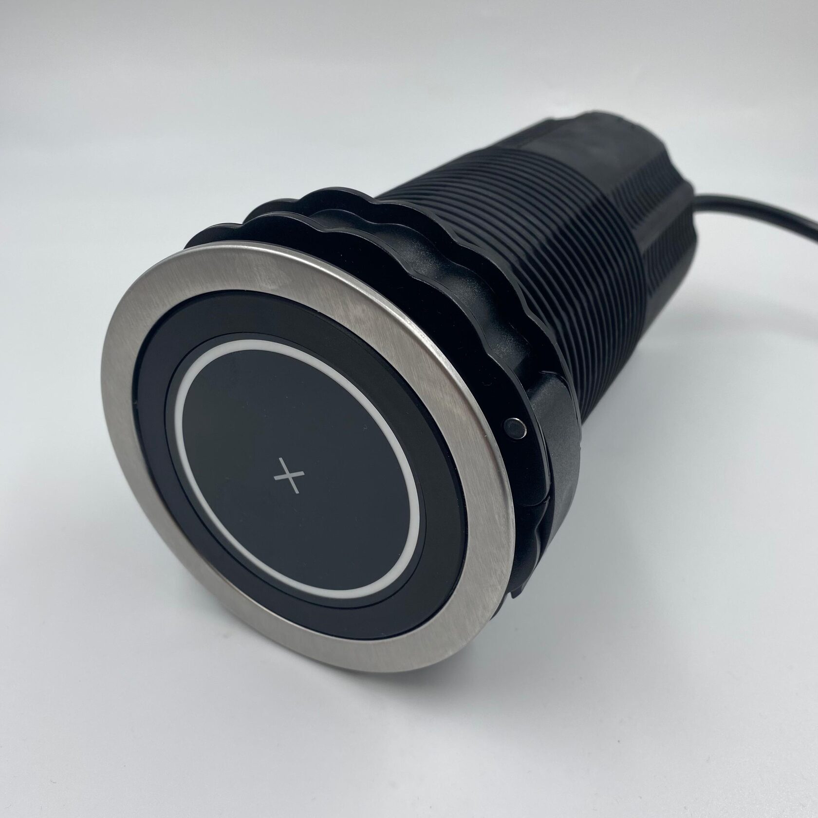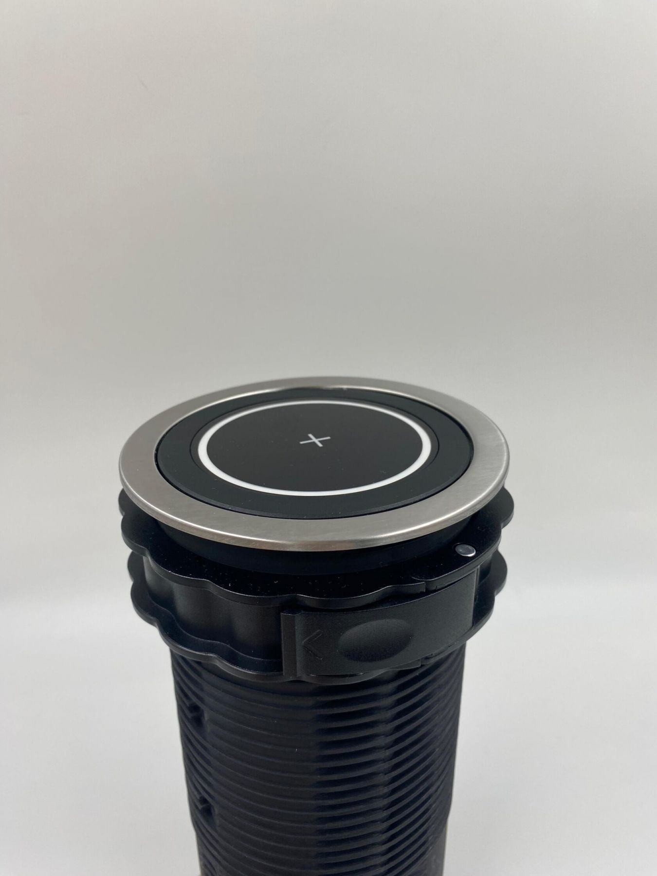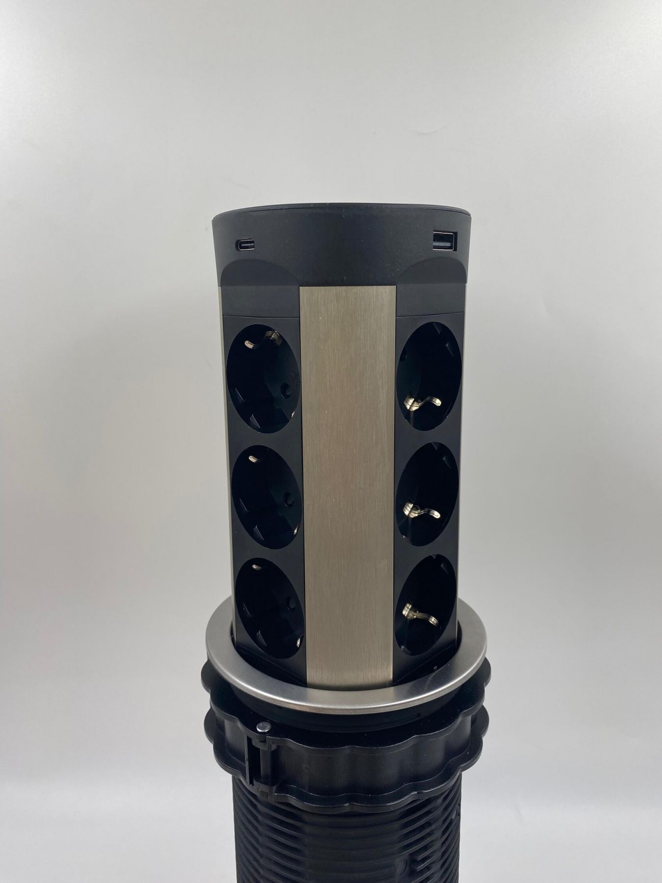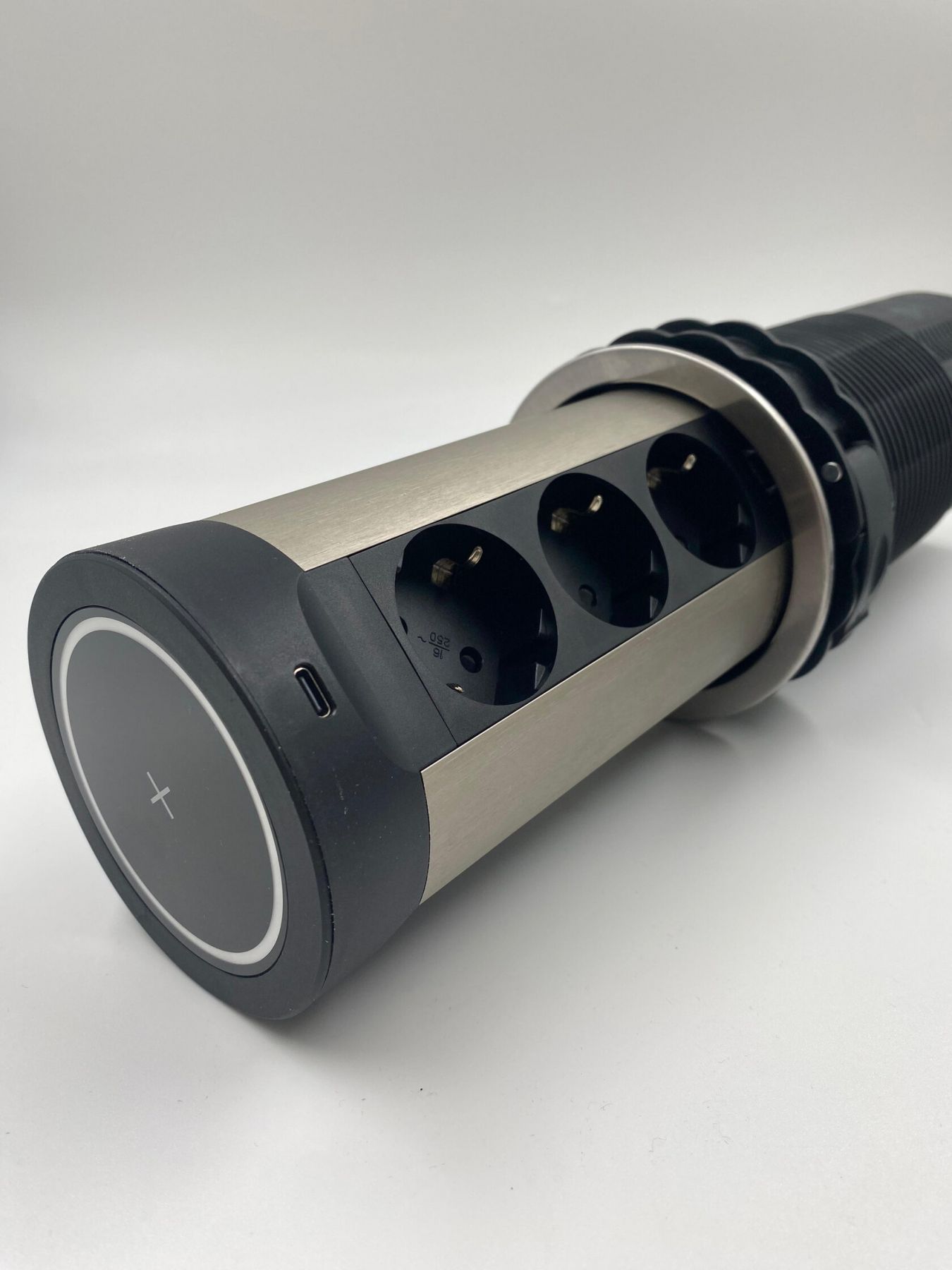 Встраиваемая выдвижная розетка для столешницы MARK-01, на 12 EURO розеток, беспроводная зарядка, USB (2 A + 2 C)