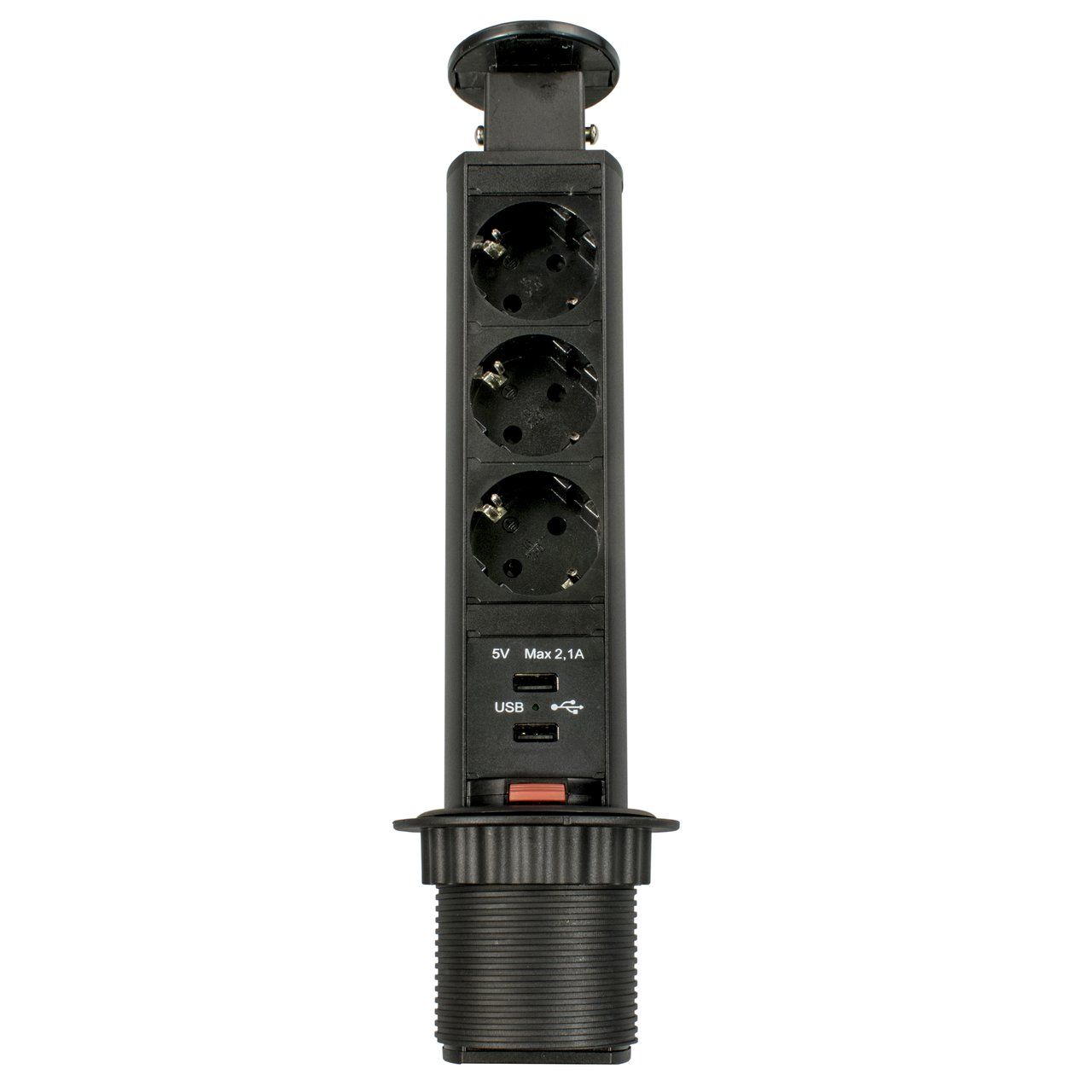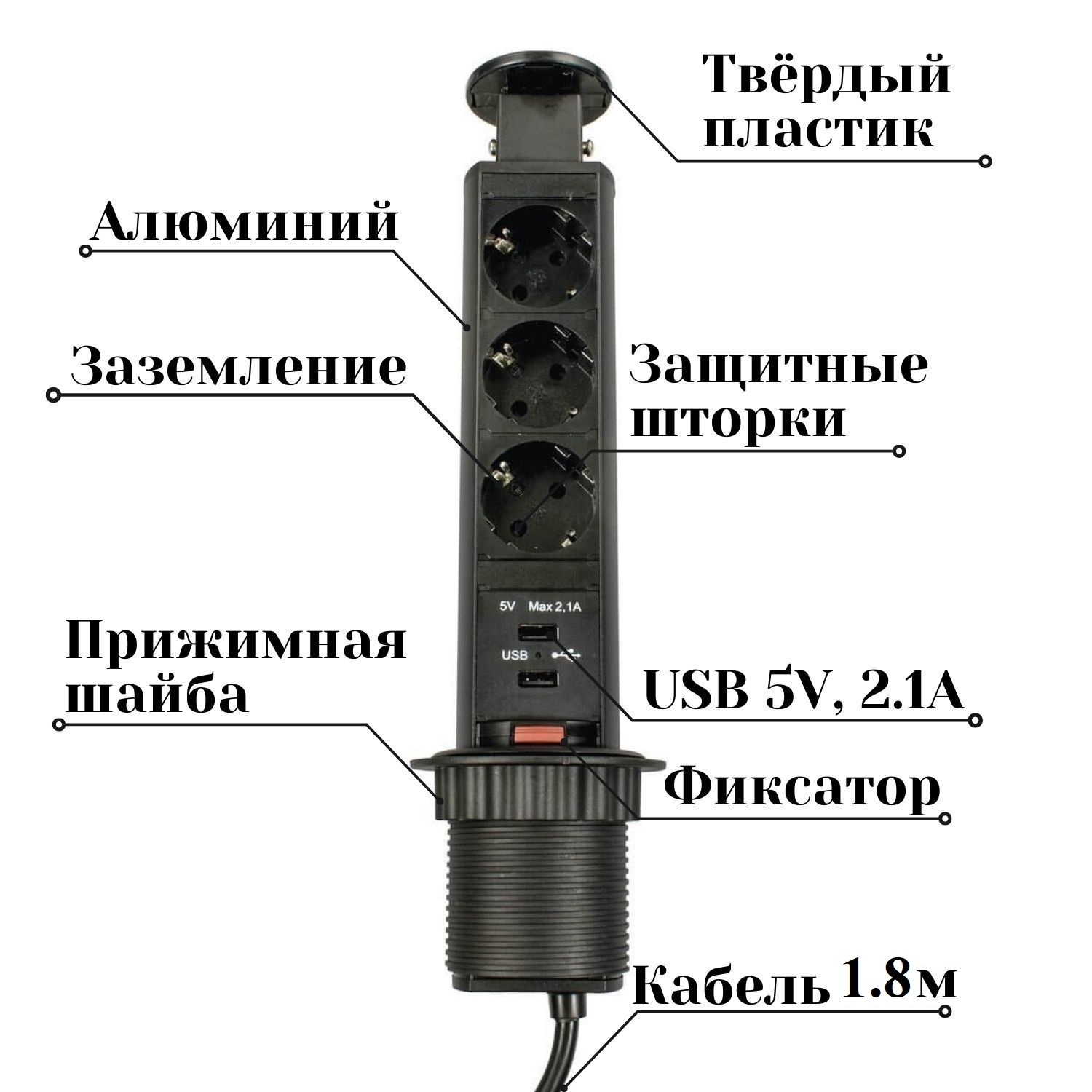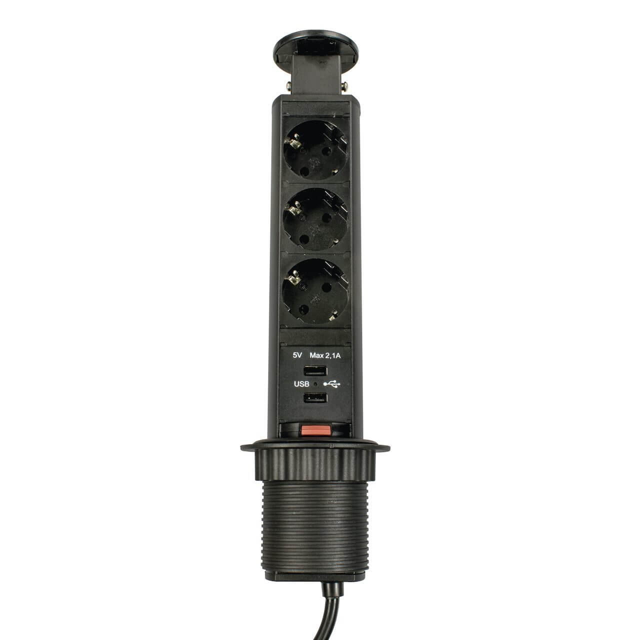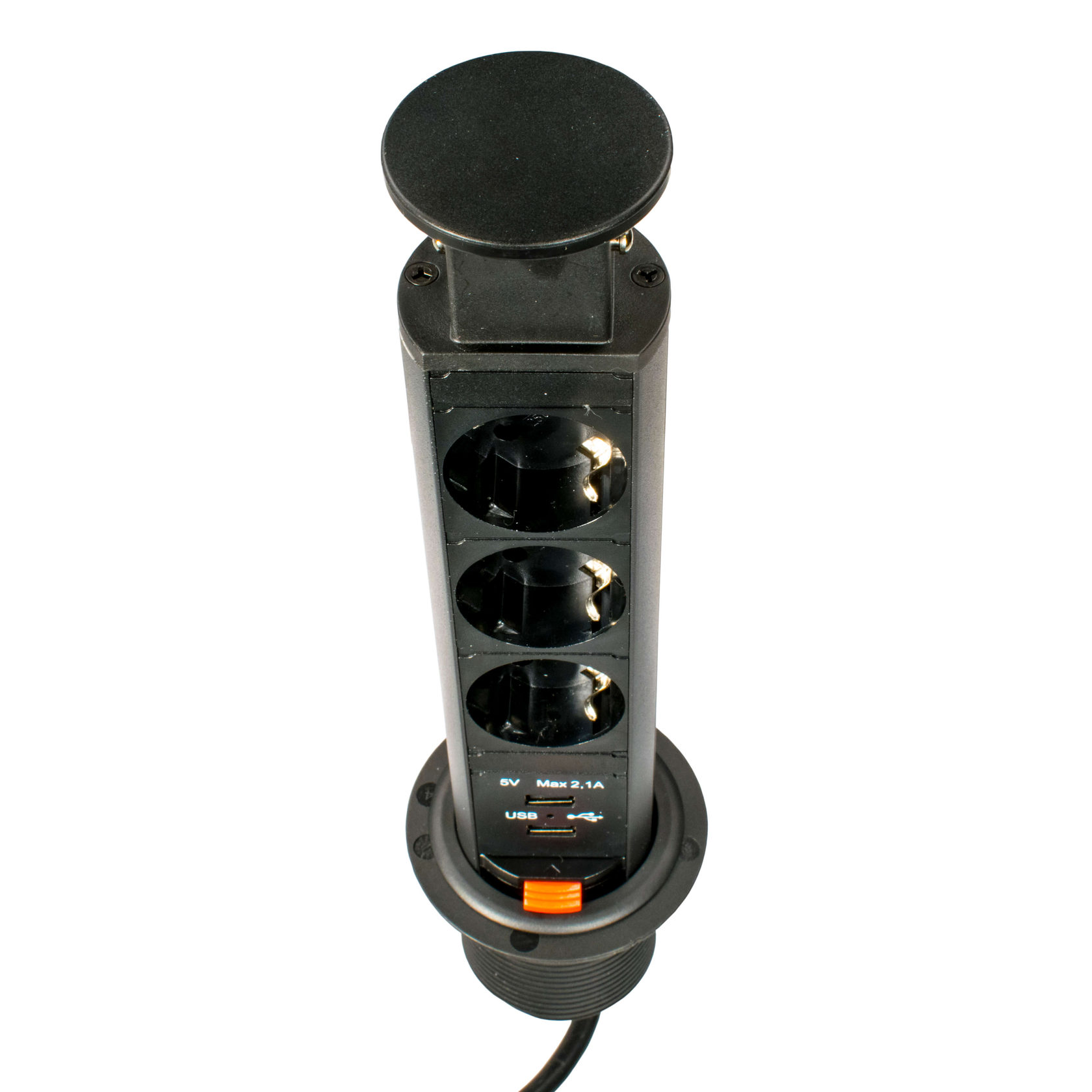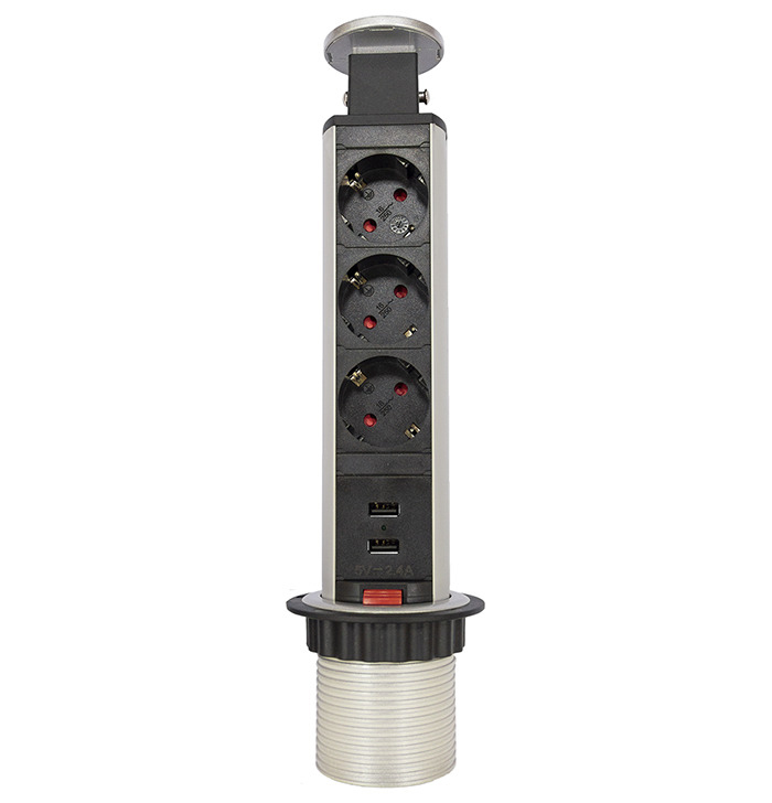 Выдвижная розетка RUFH (на 3 розетки, 2 USB)