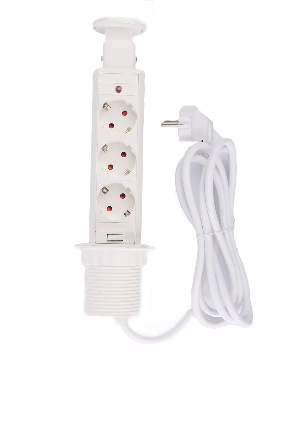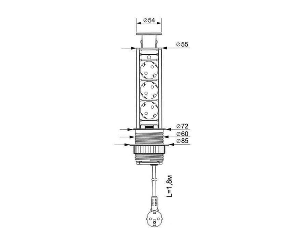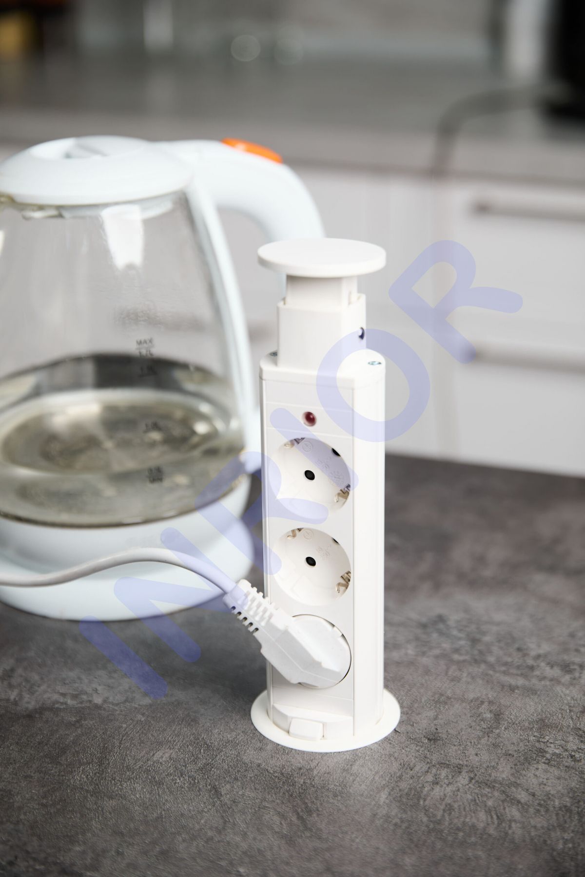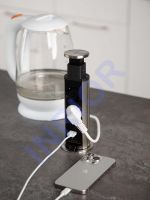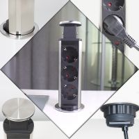 Спецификация Выдвижная розетка сертифицирована в РФ. Гарантия 2 года. Наименование: INRIOR RUFH-90 Количество розеток: 3 EURO с заземлением Напряжение: 220-240 В ~50 Гц Максимальный ток: 16 А Максимальная мощность: 3600 Вт Цвет корпуса: Нержавеющая сталь Врезное отверстие Диаметр — 60 мм Данная модель не подходит для установки в навесные шкафы. Встраиваемая выдвижная розетка для столешницы, INRIOR RUFH-90. Основной особенностью данной модели является премиальный корпус. Корпус розетки изготовлен полностью из нержавеющей стали. Цвет нержавеющая сталь. Врезной диаметр 60 мм. Данная модель предназначена для кухонных столешниц и офисных столов, ее нельзя устанавливать "вверх ногами" в навесные шкафы. Механизм работает корректно, без заеданий, не болтается в посадочной площадке. Поднимается и убирается вручную. В выдвижном удлинителе INRIOR RUFH-90, на всех розетках установлены защитные шторки, розетка выполнена с заземлением. Розетка полностью готова к работе и идет в комплекте уже с кабелем длиной 1,8 метра, с вилкой, сечение провода 3х1,5 мм. Мощность 16А, 3600 Вт. Максимальная толщина столешницы для установки 45-50 мм. Аналог: Etersso GN10503S. Комплектация Розетка INRIOR RUFH-90 Индивидуальная упаковка Инструкция по установке и эксплуатации