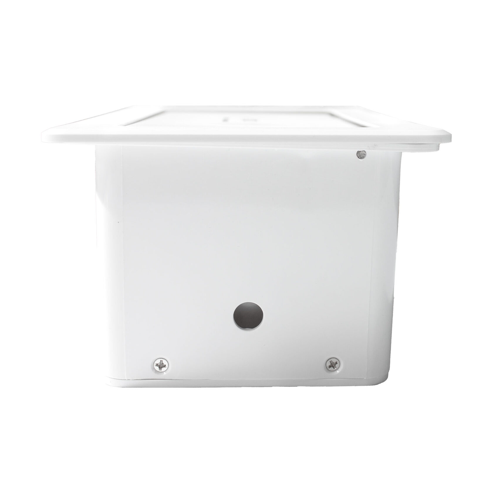 Спецификация Выдвижная розетка сертифицирована в РФ. Гарантия 2 года. Комплектация: Полностью в сборе с внутренней проводкой, монтажной коробкой, проводом 1.5 м с вилкой, USB зарядные, и беспроводной зарядкой Наименование IM-10 Количество розеток 2 USB С + А (18W), 2 EURO, беспроводная зарядка Напряжение 220-250 В Максимальный ток 16 А Максимальная мощность 3600 Вт Цвет корпуса Белый Материал: Корпус, верхняя рамка, установочная коробка из пластика Метки товара: Выдвижной розетка, удлинитель для офиса Полностью в сборе: с внутренней проводкой, с металлической монтажной коробкой, проводом 1.5 м с вилкой. Материал: Корпус, верхняя рамка, установочная коробка из пластика Напряжение - 220-250 В Выдвижная розетка, выдвижной блок розеток IM-10 (белый, 2 EURO розетки, 2 USB C + А (18W), беспроводная зарядка) с кабелем 1.5 м с вилкой, розеточный блок для столов и столешниц, навесных шкафов, мебели, белый, удлинитель. Выдвижная горизонтальная розетка, представляет собой металлический прямоугольный розеточный блок на 2 EURO, 2 USB C + A (18W) зарядные, беспроводная зарядка. При нажатии на кнопку на лицевой части розетки, происходит плавное открытие. Данная модель готова к эксплуатации вся внутренняя разводка уже сделана на заводе, в комплекте с сетевым шнуром длиной 1.5 м, необходимо только подключить изделие к розетки. Комплект поставки так же входит инструкция по установке изделия в столешницу, с подробной схемой и указанием всех размеров. Сфера применения: Выдвижные розетки отлично подходят для установки в столешницу на кухне, что помогает экономить рабочее пространство. В закрытом положении встраиваемая розетка образует со столешницей практически ровную поверхность. Также выдвижные розетки нашли распространение на кухонных столешницах, в офисах, переговорный залах, стойках обслуживания клиентов.