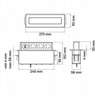 Спецификация Выдвижная розетка сертифицирована в РФ. Гарантия 2 года. Комплектация: Полностью в сборе с внутренней проводкой, монтажной коробкой, проводом 1.8 м с вилкой, USB зарядные Наименование INRIOR MAGNUM-20 Количество розеток 2 USB С + А (18W), 3 EURO Напряжение 220-250 В Максимальный ток 16 А Максимальная мощность 3600 Вт Цвет корпуса Черный Габаритные размеры 273,1х92,1х95,2 мм Врезное отверстие 245х57,5 мм Материал: Верхняя крышка из металла Метки товара: Выдвижной розетка, удлинитель для офиса Гарантия на всю нашу продукцию 2 года. Полностью в сборе: с внутренней проводкой, с металлической монтажной коробкой, проводом 1.8 м с вилкой. Материал: Верхняя крышка из металла Габаритные размеры 273,1х92,1х95,2 мм Врезное отверстие 245х57,5 мм Напряжение - 220-250 В Выдвижная встраиваемая розетка, горизонтальная, INRIOR MAGNUM-20 на 3 розетки, 2 USB, 2 USB C + A (18W) с кабелем 1.8 м с вилкой, розеточный блок для столов и столешниц, навесных шкафов, мебели, черный, удлинитель. Выдвижная горизонтальная розетка, представляет собой металлический прямоугольный розеточный блок на 3 EURO, 2 USB C + A (18W) зарядные. При нажатии на лицевую панель розетки, происходит плавное открытие. Качественная порошковая окраска корпуса позволяет долгое время сохранить внешний вид нового изделия. Данная модель готова к эксплуатации вся внутренняя разводка уже сделана на заводе, в комплекте с сетевым шнуром длиной 1.8 м, необходимо только подключить изделие к розетки. Комплект поставки так же входит инструкция по установке изделия в столешницу, с подробной схемой и указанием всех размеров. Сфера применения: Выдвижные розетки отлично подходят для установки в столешницу на кухне, что помогает экономить рабочее пространство. В закрытом положении встраиваемая розетка образует со столешницей практически ровную поверхность. Также выдвижные розетки нашли распространение на кухонных столешницах, в офисах, переговорный залах, стойках обслуживания клиентов.
