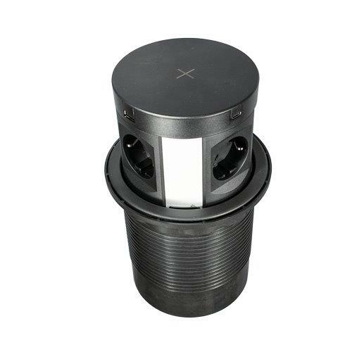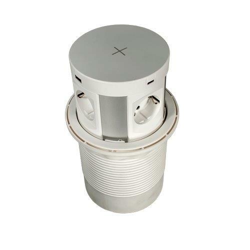 Выдвижной блок розеток, мини колонна MAC (с беспроводной зарядкой, на 4 розетки, 2 USB (A), 2 USB (C))
