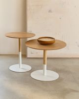 Watse Набор из 2 круглых столиков из шпона дуба и матового белого металла