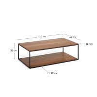 Журнальный столик Yoana от фабрики La Forma (ex Julia Grup) – простая геометрия для любого дизайна. Журнальный столик Yoana гармонично впишется в любую городскую обстановку. Его минимализм и современная обработка материалов выглядят лаконично и современно. Разные формы и разные цвета столешниц позволяют выбрать оптимальную модель для вашей площади и созданного интерьера. Столик собран из металлического каркаса и двух деревянных панелей одинакового размера. Панели сделаны из ДСП и покрыты шпоном грецкого ореха или дуба (зависит от выбранной модели). Полиуретановое покрытие защищает от ультрафиолета и влаги, делает изделие более неприхотливым в эксплуатации. Каркасы окрашены в белый или черный цвет (зависит от выбранной модели) матовой эмалью, которая защищает металл от коррозии. Максимальная нагрузка на одну полку - 10 кг. Суммарно допускается нагружать стол весом не более 30 кг. Размеры: ширина – 110 см, высота – 35 см, глубина – 60 см. Вес – 15,85 кг. Рекомендации по уходу: чистка мягким моющим средством. В коллекции также представлены круглые и квадратные приставные столики.