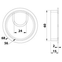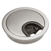 Заглушка кабель-канала, материал: сплав цинк-алюминий, диаметр 60 мм, цвет: матовый хром - элемент офисного оснащения и не только, устанавливаемый на рабочем столе в специальное отверстие, служащее для пропуска проводов оргтехники. Заглушка придает эстетичный внешний вид поверхности офисного стола.