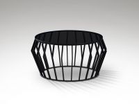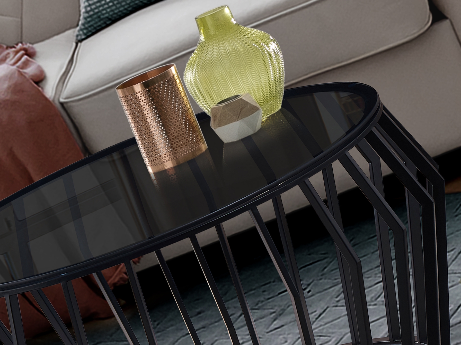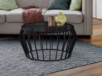 Журнальный столик из металла с матовой черной отделкой. Верхняя часть из дымчатого стекла толщиной 8 мм.