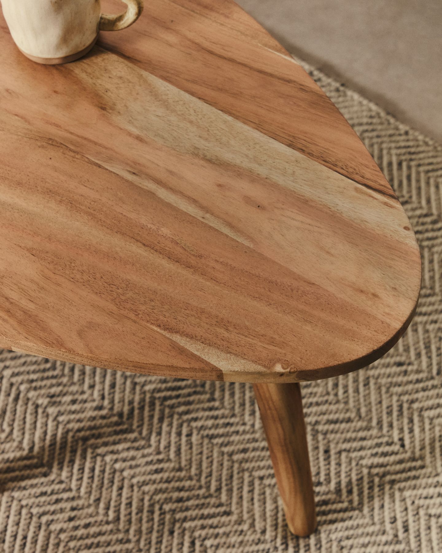 Журнальный столик из массива акации с выбеленной отделкой — идеальный вариант для тех, кто хочет объединить элегантность, функциональность и характер. Вдохновленный самым современным скандинавским дизайном, этот стол выделяется своими утонченными линиями и сбалансированными пропорциями, привнося изысканное и безмятежное присутствие в любое пространство. Изготовленный из массива акации, его тонкая выбеленная отделка подчеркивает естественную текстуру и придает ей особую яркость, добавляя свежести и вневременности пространству.