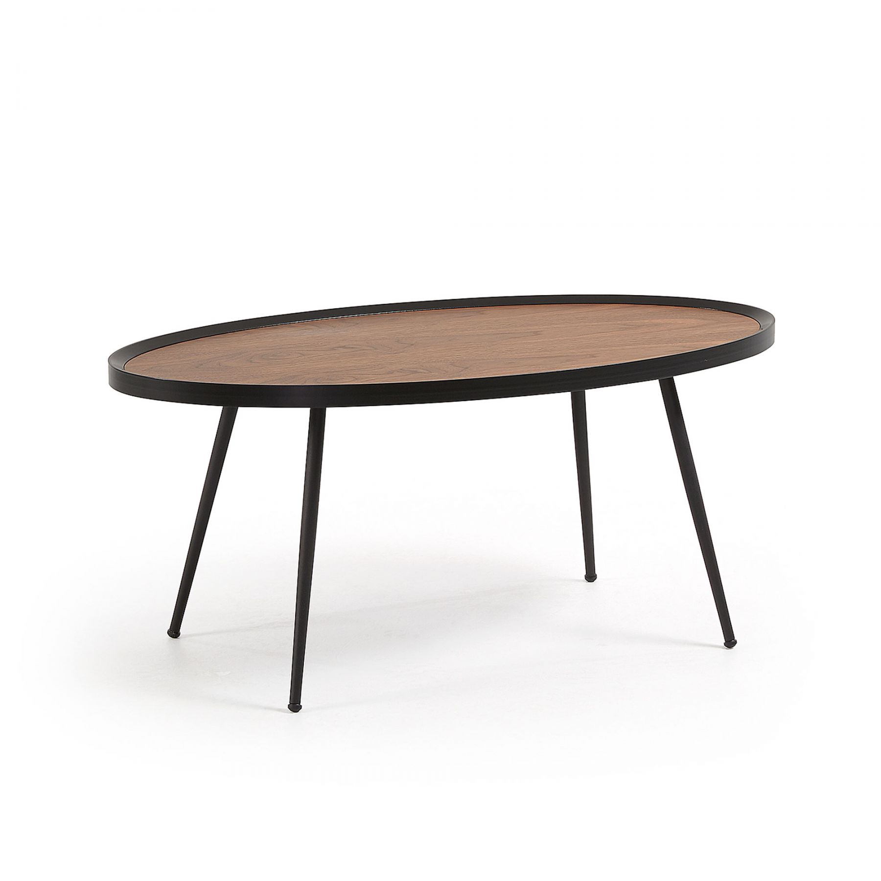 Журнальный столик Kamelia из шпона ореха от фабрики La Forma – ореховый шпон в высокой металлической оправе. Журнальный столик Kamelia выглядит удивительно лаконично. Обтекаемая форма, изящные ножки, возвышенное обрамление – все просто идеально гармонирует друг с другом. Модель однозначно удачная для любого европейского интерьера. Она прекрасно будет смотреться как отдельный предмет, так и в качестве вспомогательного возле дивана или кресла. Столик овальной формы. Столешница выполнена из шпона грецкого ореха, имеющего специальное покрытие для защиты от влаги и загрязнений. Вместе с бортикам ее высота составляет 2,5 см. Опора металлическая, покрыта черной эпоксидной краской. Ножки конусные, с пластиковыми наконечниками. Они защищают напольное покрытие деформации. Максимально допустимая нагрузка – 20 кг. Размеры: ширина – 102 см, глубина – 56 см, высота – 44 см. Потребуется минимальная сборка. Инструкция и крепеж входят в комплектацию.