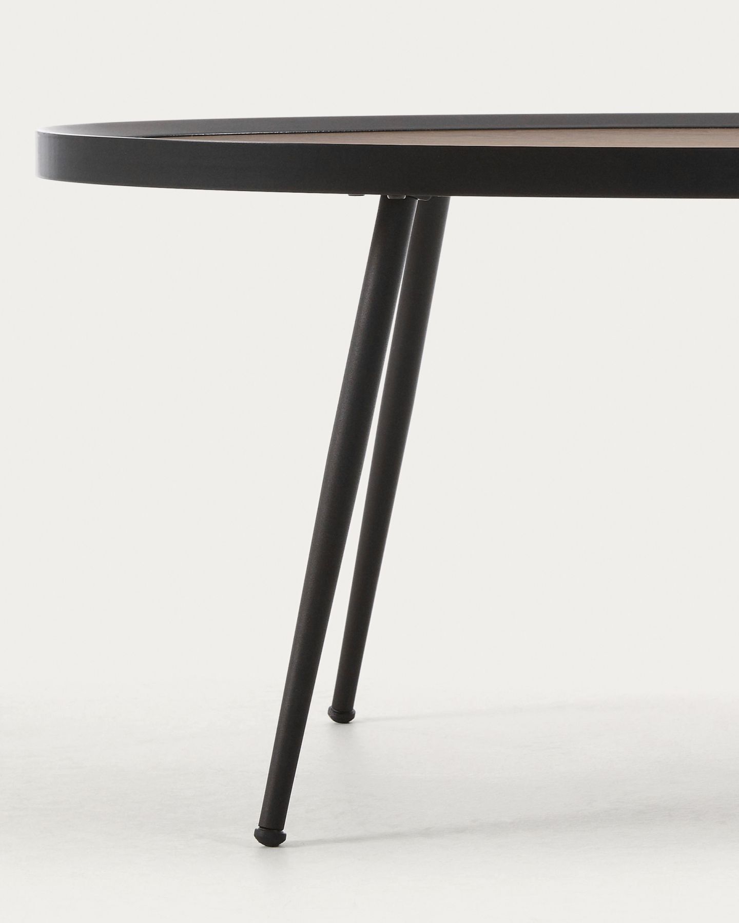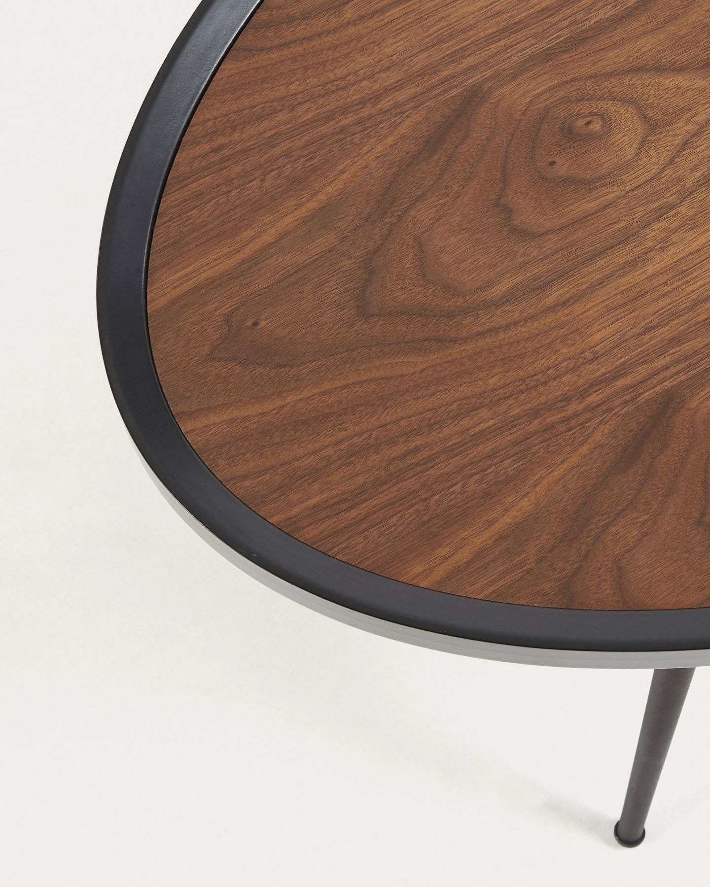 Журнальный столик Kamelia из шпона ореха от фабрики La Forma – ореховый шпон в высокой металлической оправе. Журнальный столик Kamelia выглядит удивительно лаконично. Обтекаемая форма, изящные ножки, возвышенное обрамление – все просто идеально гармонирует друг с другом. Модель однозначно удачная для любого европейского интерьера. Она прекрасно будет смотреться как отдельный предмет, так и в качестве вспомогательного возле дивана или кресла. Столик овальной формы. Столешница выполнена из шпона грецкого ореха, имеющего специальное покрытие для защиты от влаги и загрязнений. Вместе с бортикам ее высота составляет 2,5 см. Опора металлическая, покрыта черной эпоксидной краской. Ножки конусные, с пластиковыми наконечниками. Они защищают напольное покрытие деформации. Максимально допустимая нагрузка – 20 кг. Размеры: ширина – 102 см, глубина – 56 см, высота – 44 см. Потребуется минимальная сборка. Инструкция и крепеж входят в комплектацию.