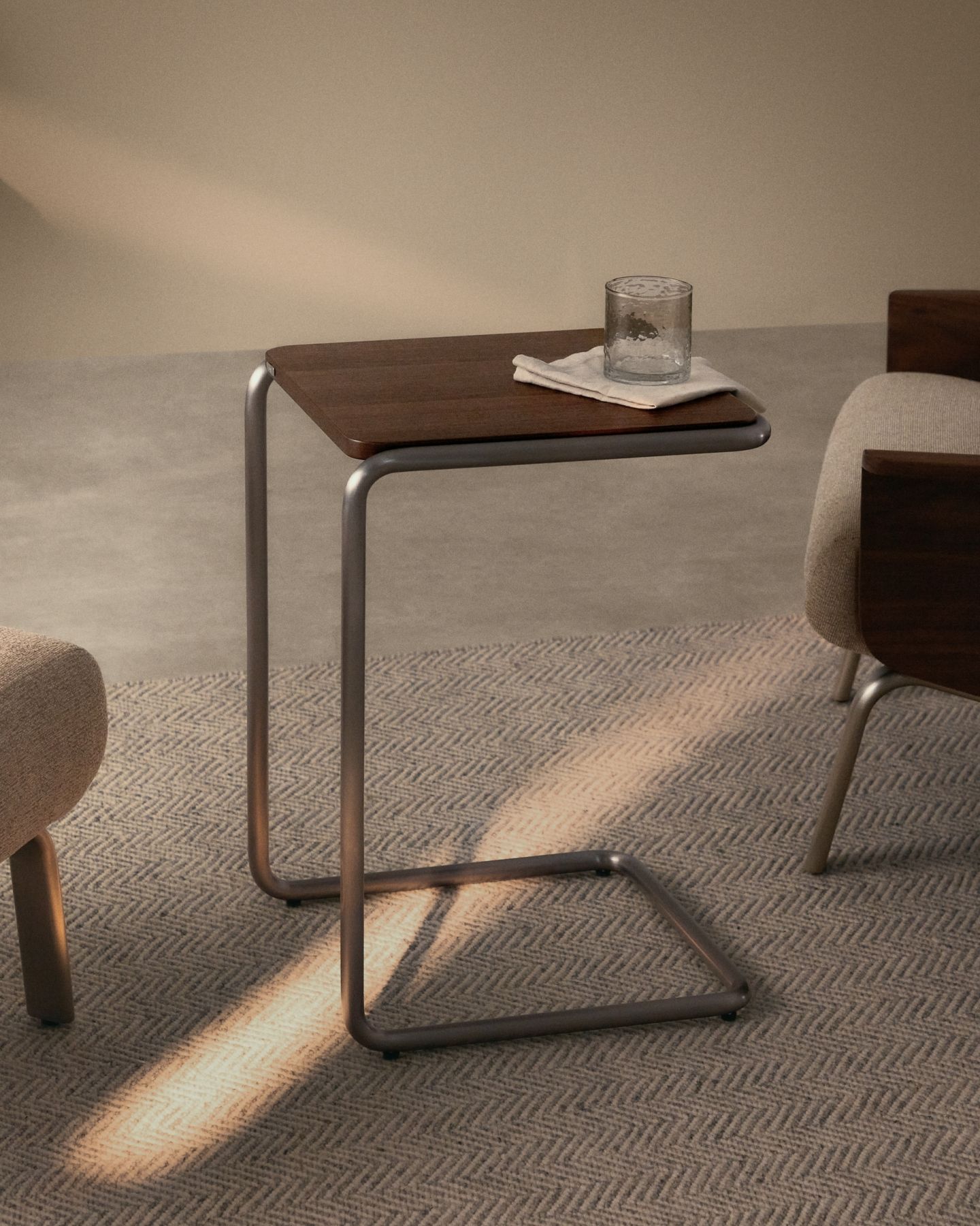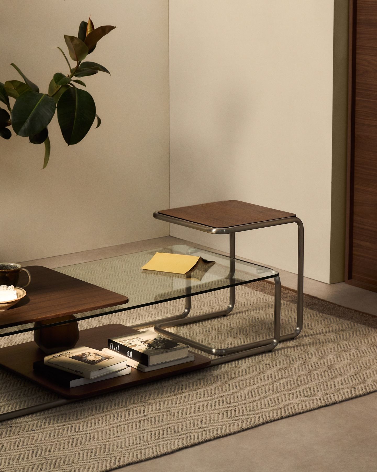 Журнальный столик Tarsel из 100% орехового шпона с конструкцией из матовой стали