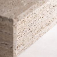 Центральная часть Theuville, бежевого цвета, в стиле ар-деко. Изготовлен из травертина. Столик изготовлен из натуральных материалов, поэтому каждый из них будет эксклюзивным, со своими уникальными оттенками и текстурами. Пористость и неоднородность материала не считаются браком