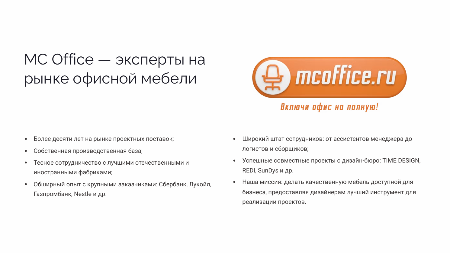 Некоторые объекты, размещенные на сайте, являются интеллектуальной собственностью компании MegaCityOffice. Использование таких объектов установлено действующим законодательством РФ.